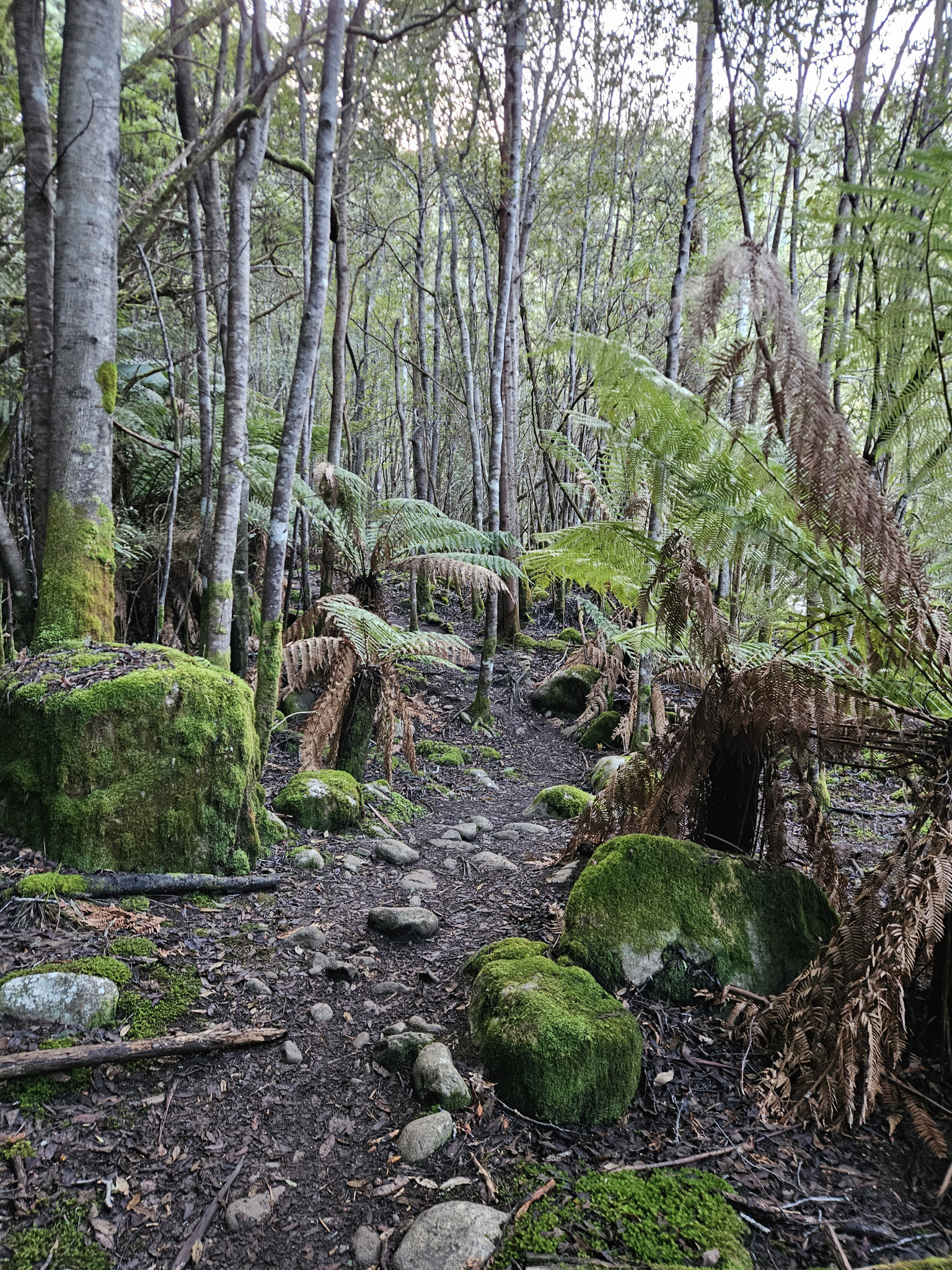 The first few kilometres of the trail follows the river, with mossy boulders and ferns lining the track. After walking for around 1.6km, the trail begins to get gradually steeper, before levelling out again. Some sections along here can become quite muddy. This area is rich with bird life, including the Superb Lyrebird (Menura novaehollandiae), and it is worth keeping an ear out for them as they mimic multiple other bird species calls.