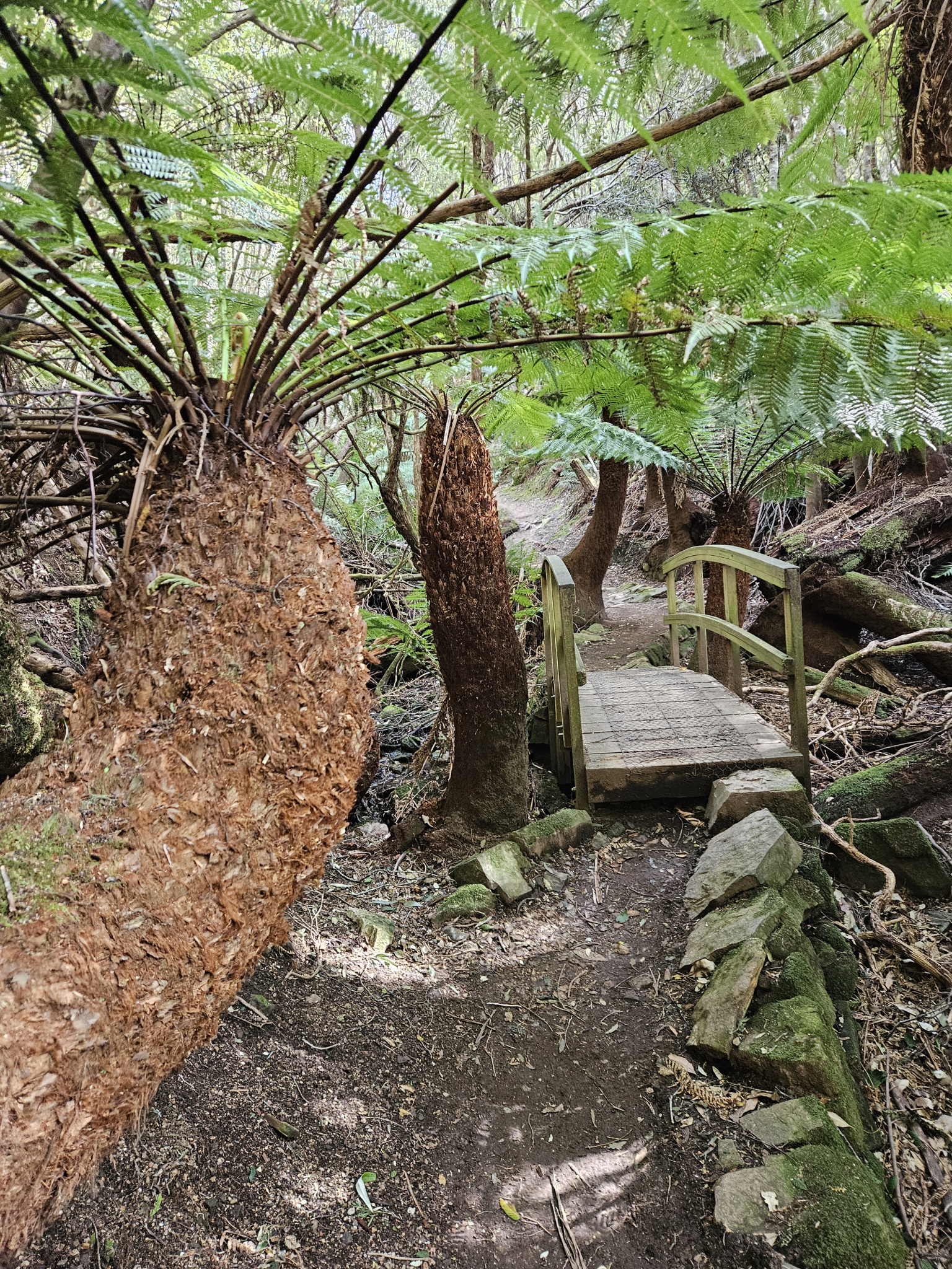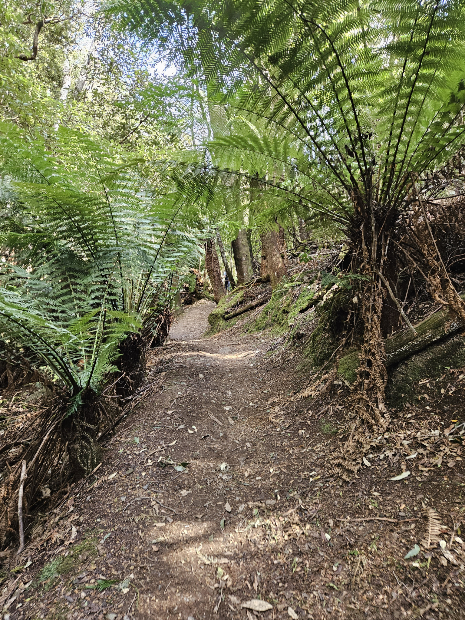 There are no facilities on this walk, however, in Fern Tree there are public toilets and a tavern where lunch and dinner can be purchased which is a few hundred metres further around the corner along the road from the trailhead.