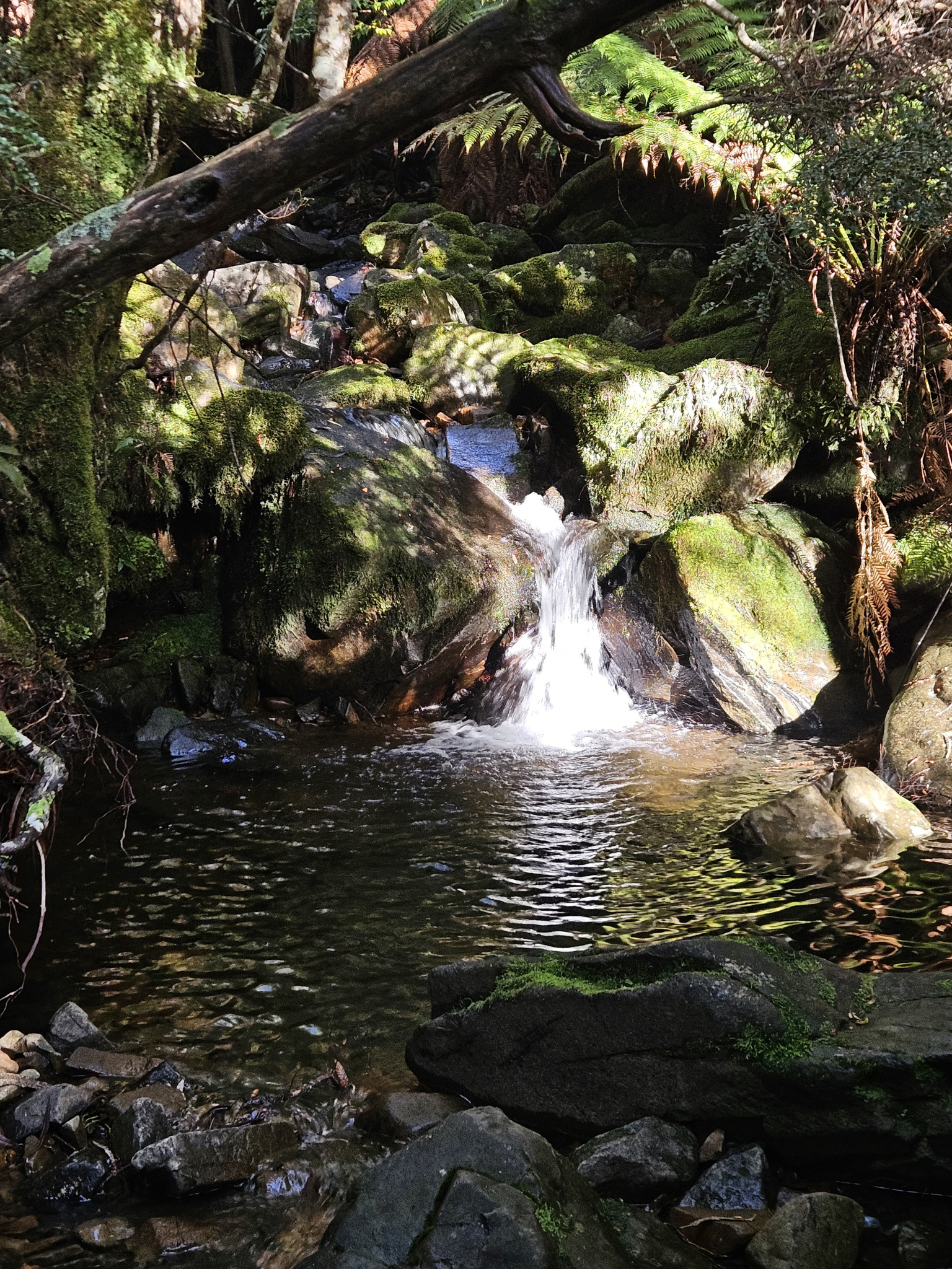 A lovely, short walk through cool-temperate rainforest, to Myrtle Creek Waterfall.