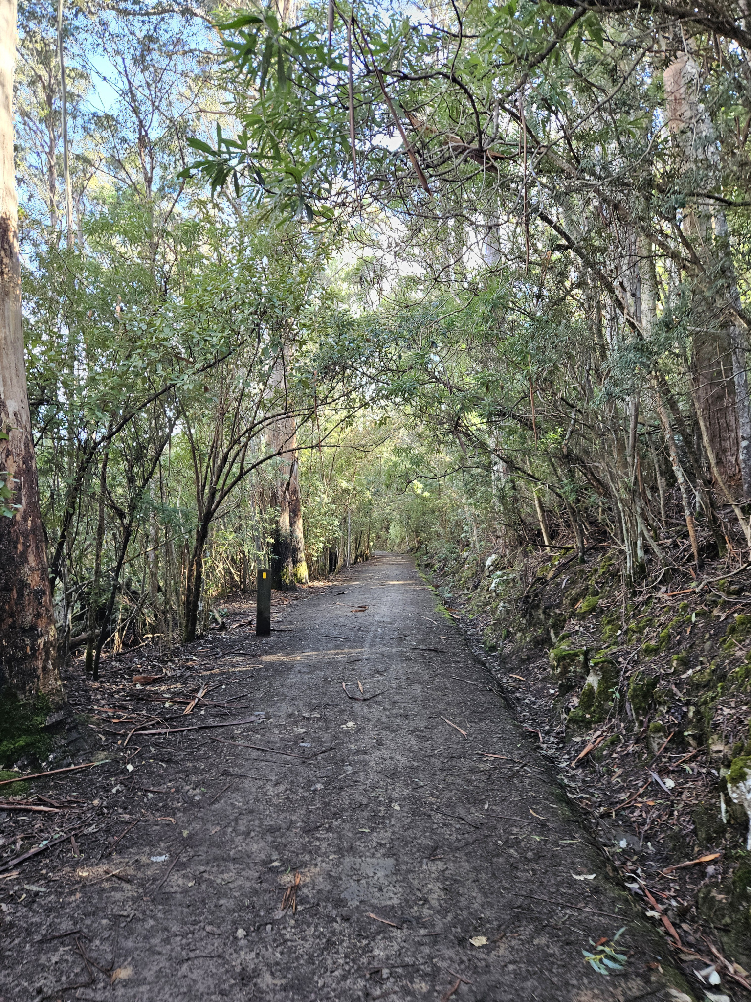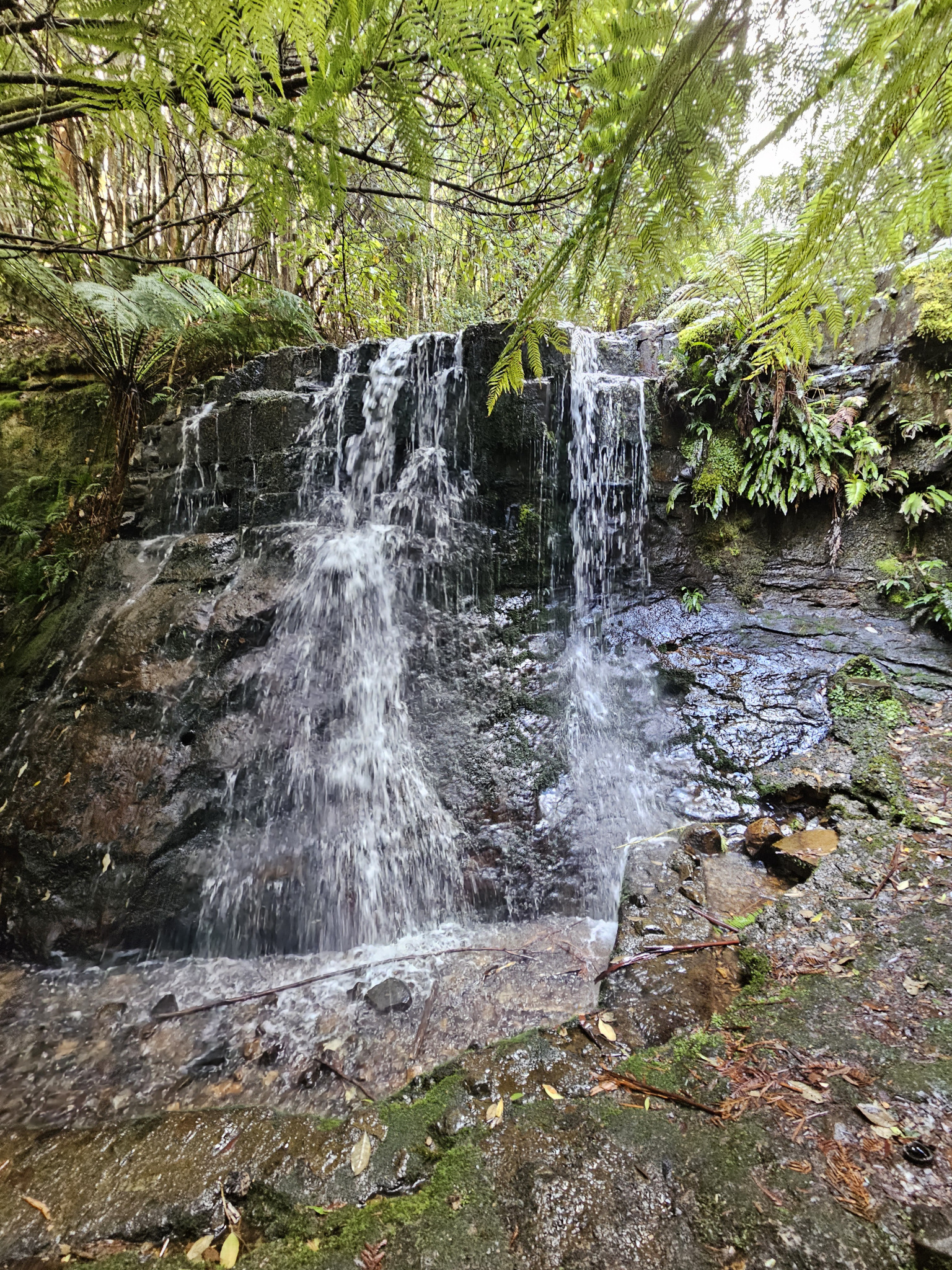 A lovely short walk through the mossy forest above Fern Tree to Silver Falls that utilises several trails.