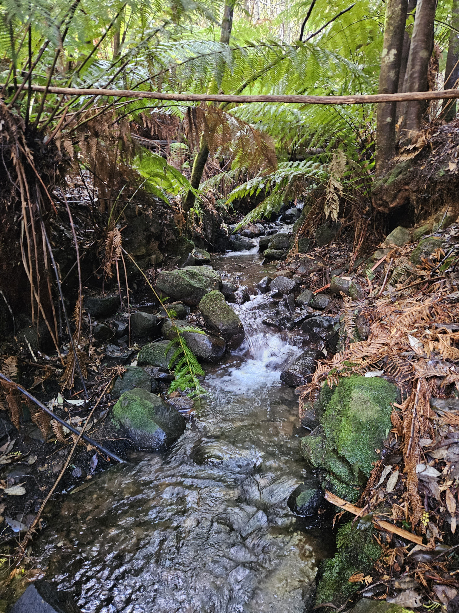 Fern trees, bubbling creeks and mossy rocks, as well as funghi during late autumn and winter, are some of the natural highlights along this trail.